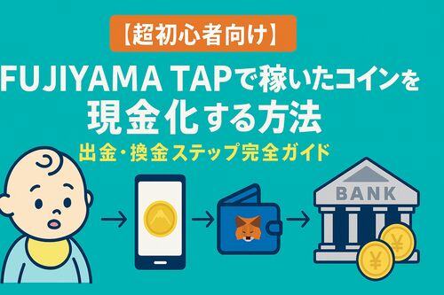 FUJIYAMA TAPで稼いだコインを日本円に換金する方法を初心者向けに解説。ウォレット準備から取引所出金まで、安全に現金化できるステップを紹介。
